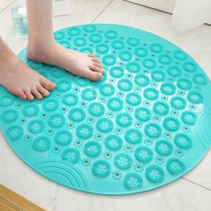 - Esthétique – Un tapis rond ajoute une touche visuelle unique et élégante à votre salle de bain.