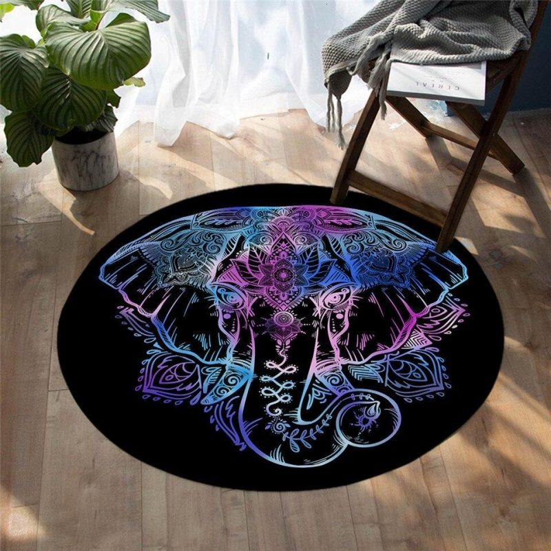 Renouvelez votre intérieur avec ce Tapis Rond Éléphant Multicolore !