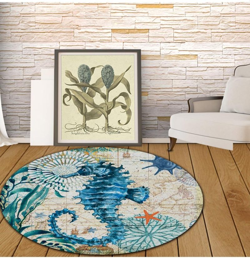 Transformez votre intérieur avec ce Tapis Rond Hippocampe !