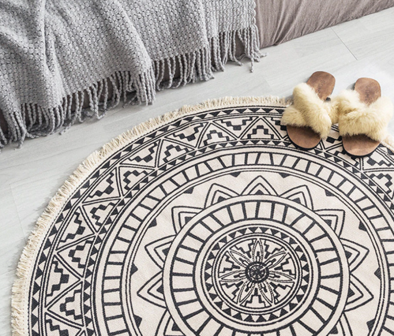 Si votre budget est contraint, un petit tapis rond peut toujours s’intégrer dans votre décor. Vous pouvez combiner plusieurs petits tapis ronds autour de meubles comme une commode, table de chevet ou étagère.